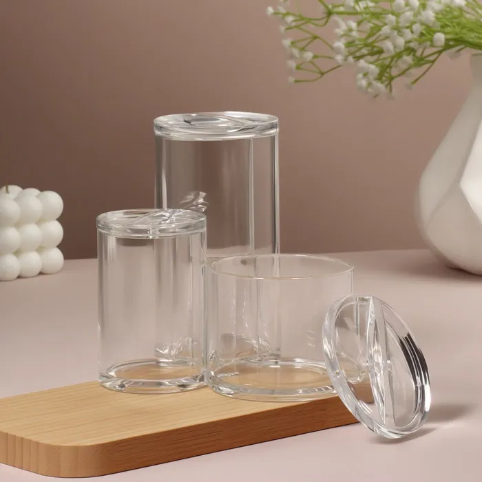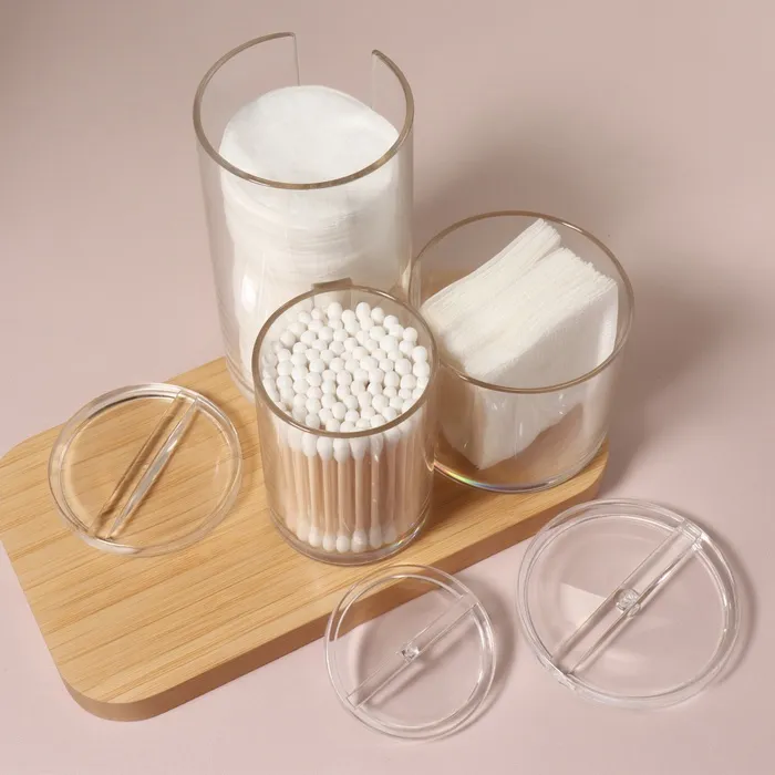 Стильный органайзер поможет навести порядок среди гигиенических принадлежностей. Изделие прозрачное, поэтому незаметно впишется в любой интерьер, а вы всегда будете видеть, сколько в них осталось ватных палочек и дисков. Сверху органайзеры плотно закрываются крышкой, которая защищает содержимое емкости от пыли и брызг воды. Аксессуар способен вписаться в любой интерьер, сэкономив при этом место в шкафчиках или на вашей тумбочке.
