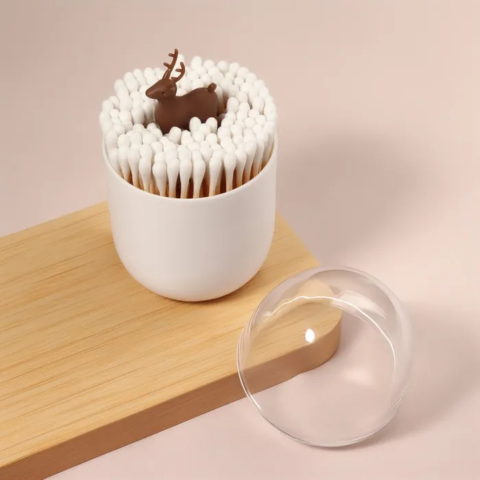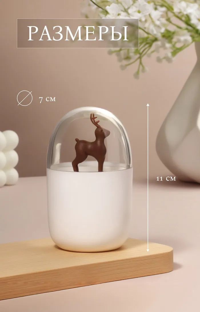 Органайзер для ватных палочек «ОЛЕНЬ», с крышкой, d=7×11 см, белый, прозрачный — Характеристики