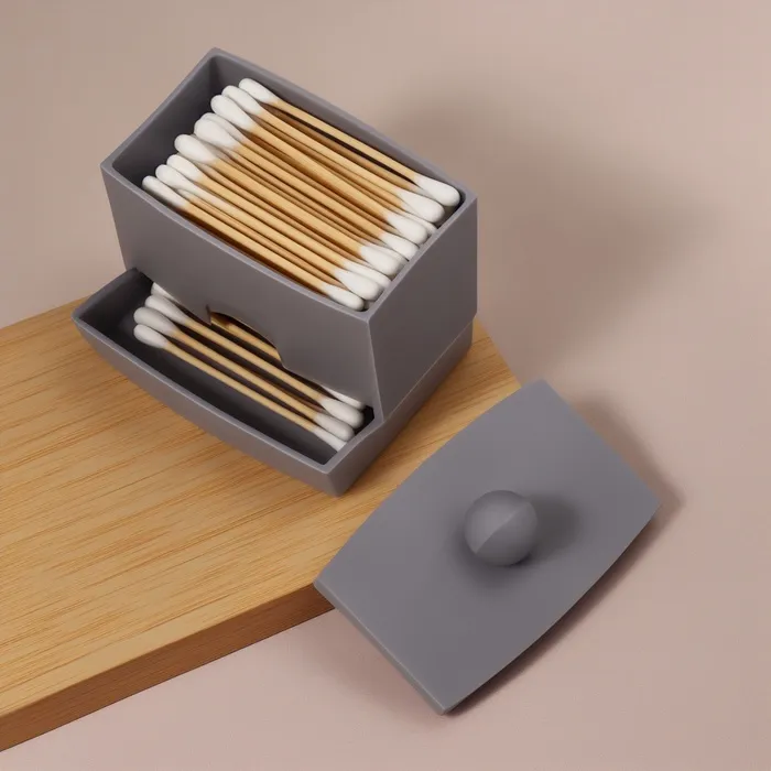 - Защита от загрязнений: крышка плотно прилегает, защищая ватные палочки от пыли и брызг воды.