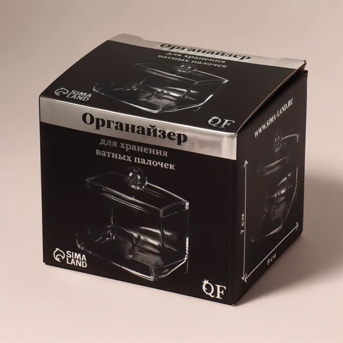 Органайзер для ватных палочек, с крышкой, 9×7×10 см, прозрачный — Характеристики