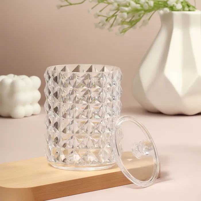 Органайзер для ватных палочек, с крышкой, d=8×12.5 см, прозрачный — Характеристики