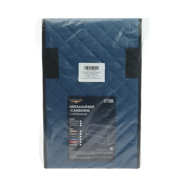 Органайзер кофр в багажник автомобиля Cartage саквояж, экокожа стеганая, 30х30х30 см синий — Характеристики