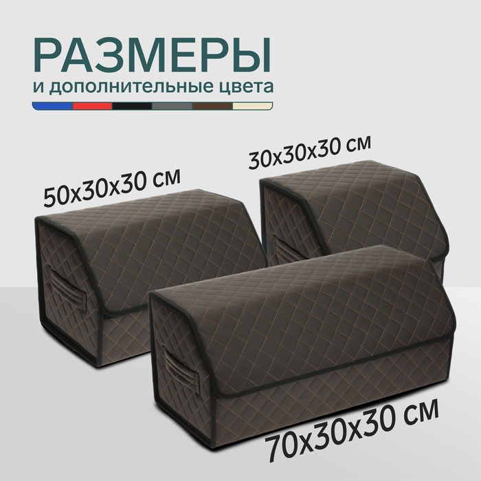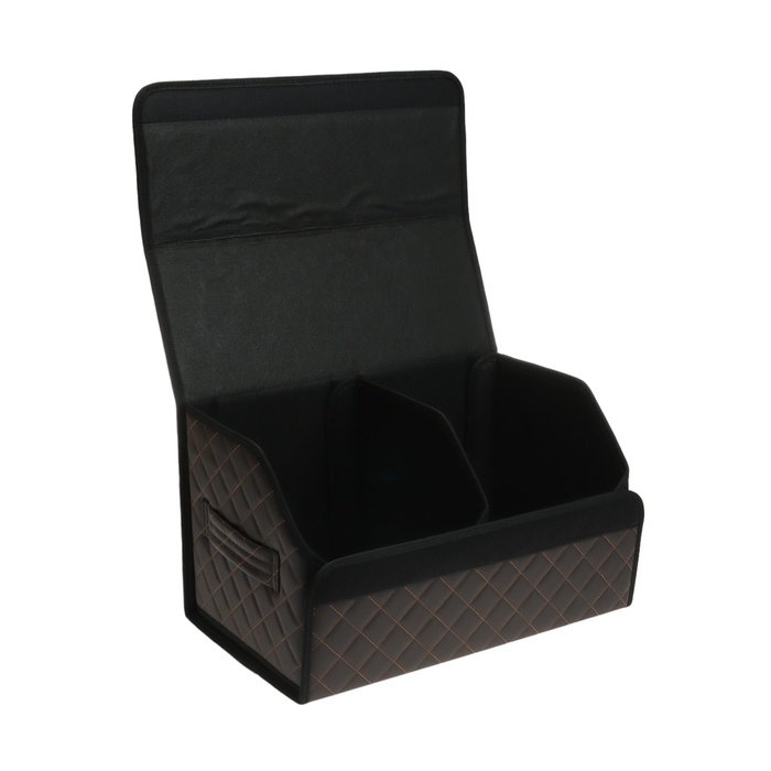 Органайзер кофр в багажник автомобиля Cartage саквояж, экокожа стеганая, 50х30х30 см, коричневый — Характеристики