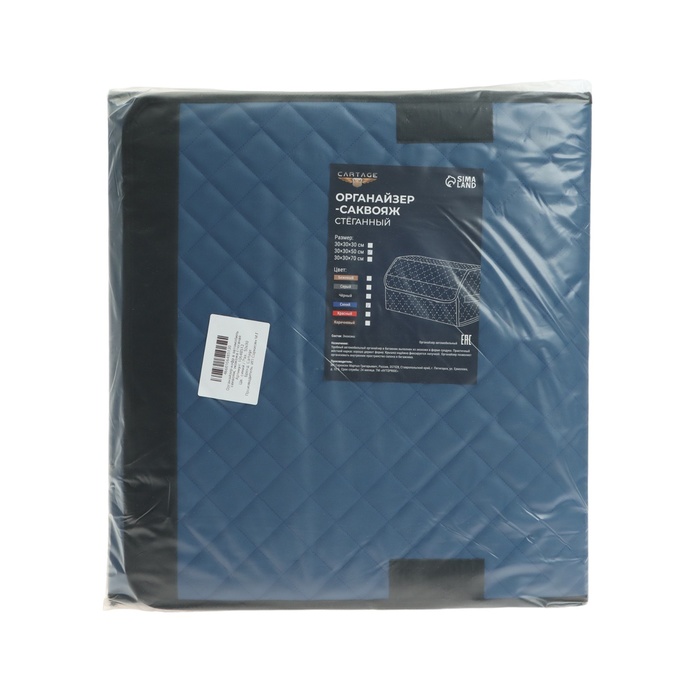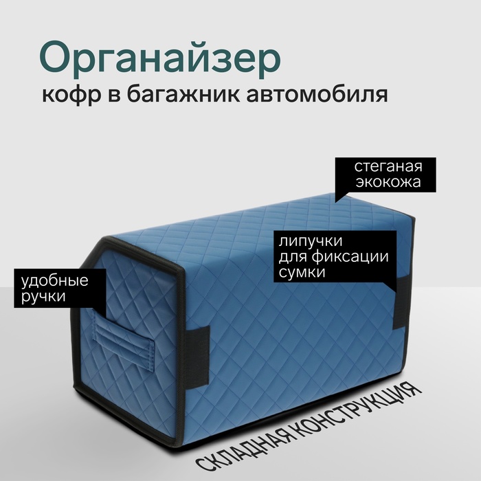 Органайзер кофр в багажник автомобиля Cartage саквояж, экокожа стеганая, 50х30х30 см, синий — Характеристики