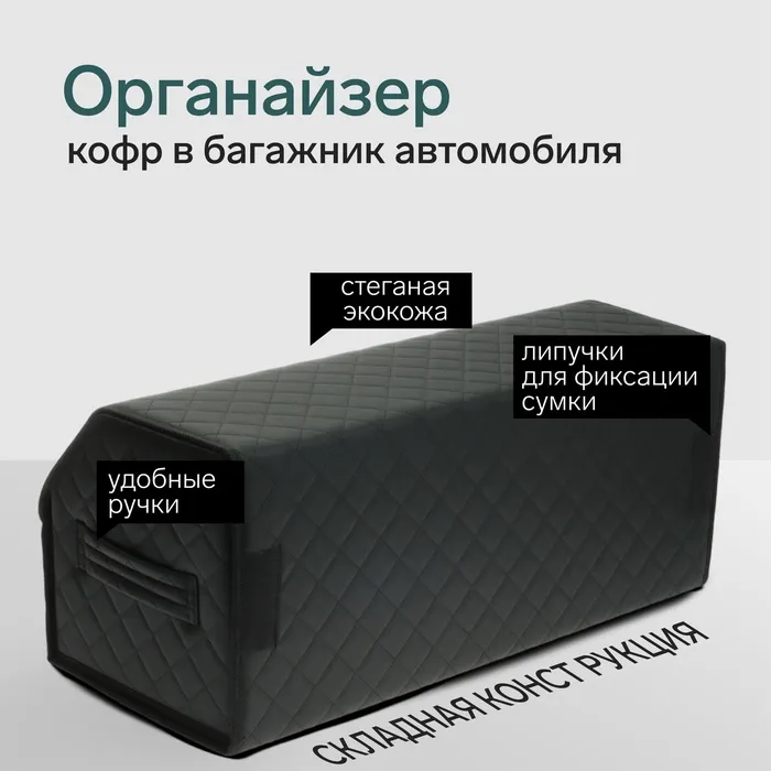 Органайзер кофр в багажник автомобиля Cartage саквояж, экокожа стеганая, 70х30х30 см, черный — Характеристики