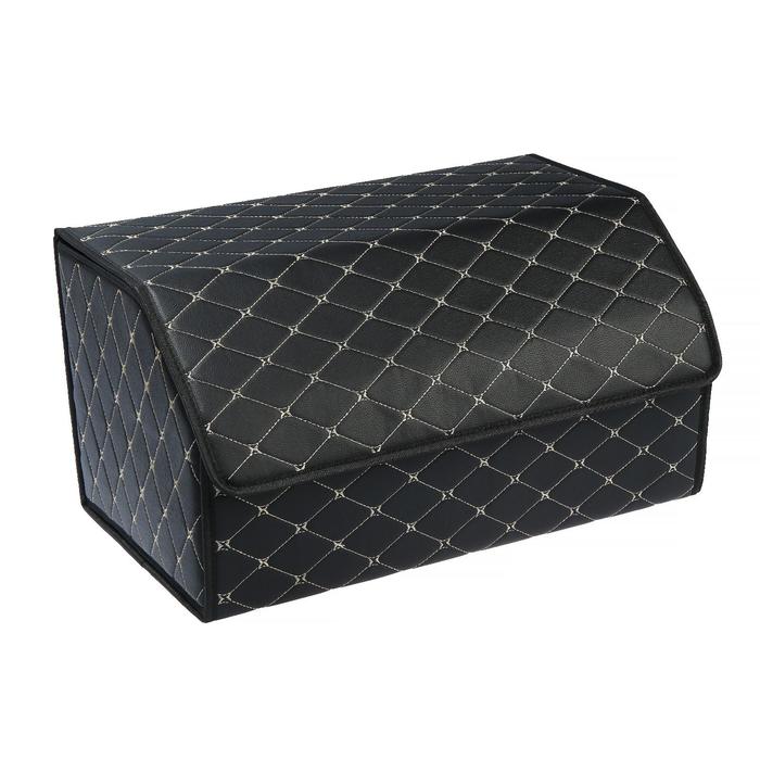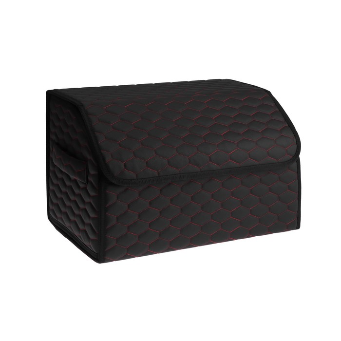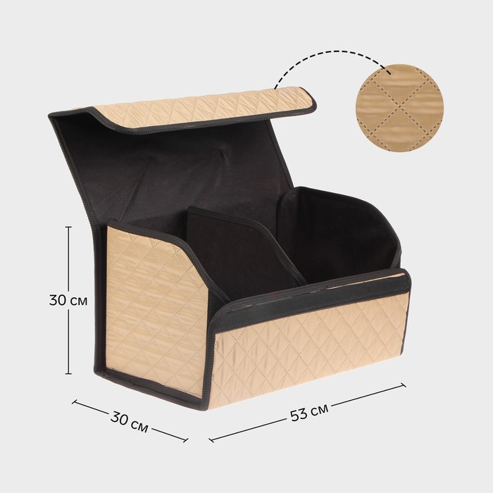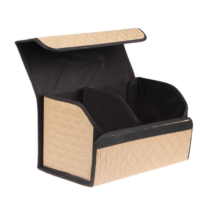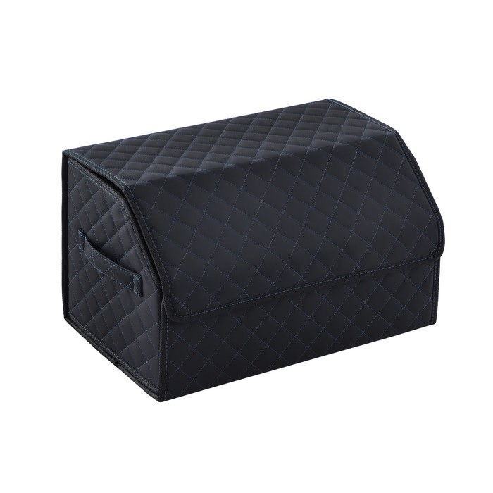 Органайзер в багажник авто – это очень удобная вещь, с помощью которой легко хранить и перевозить вещи, а также экономить место в машине! Этот органайзер для авто избавит Вас от вечного беспорядка в багажнике и будет долго радовать глаз красивым внешним видом. Размер органайзера самый универсальный – не большой и не маленький. Он не будет занимать много места в багажнике но при этом он достаточно вместителен. В полезном пространстве органайзера есть разделитель. Благодаря нему у вас есть два отсека для вещей. Разделитель можно убрать и получить один большой отсек. Отсутствие разделителя не влияет на прочность конструкции. В саквояж можно сложить различные инструменты, автомобильную косметику, аксессуары и прочие химические средства. Также он используется для перевозки и хранения спортивного инвентаря, пляжных принадлежностей, аптечки и туристского снаряжения. Поверхность органайзера для багажника даже при больших загрязнениях легко протирается влажными салфетками.