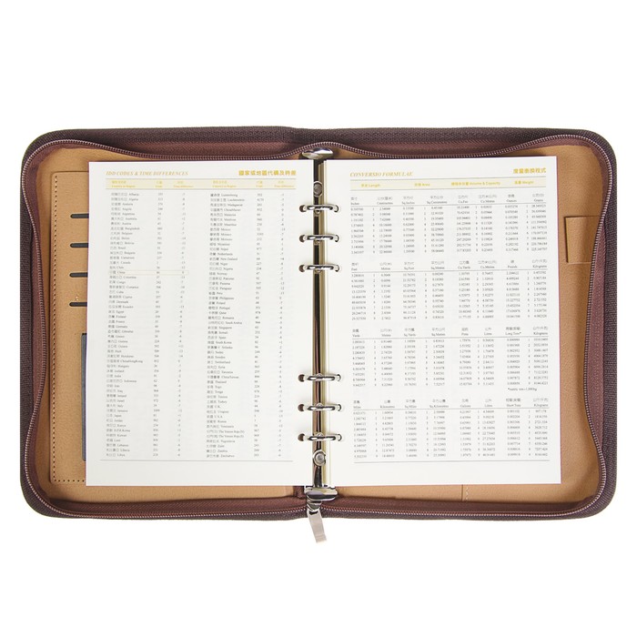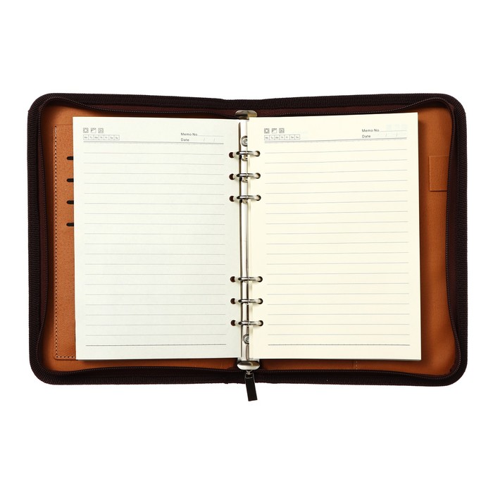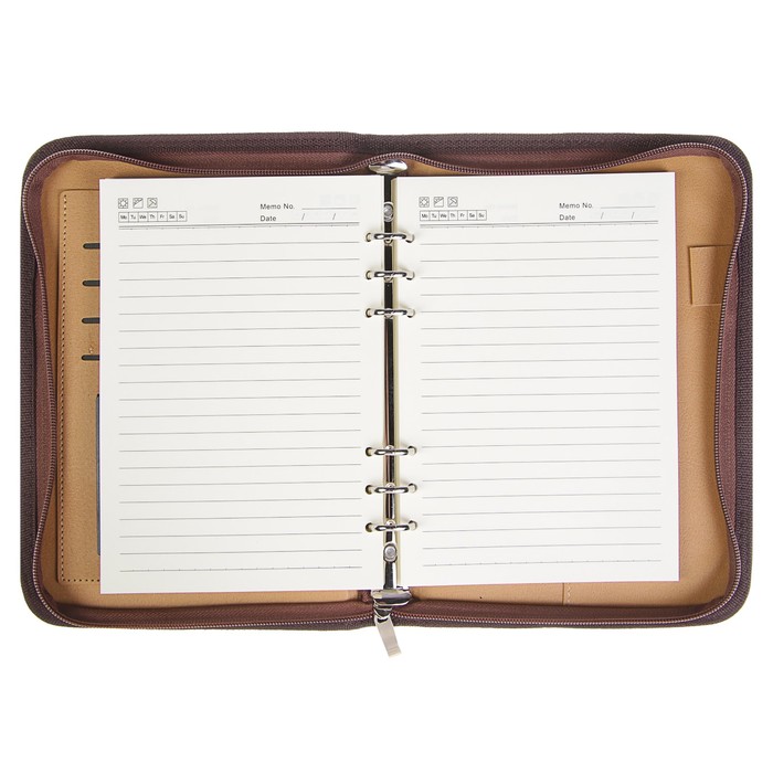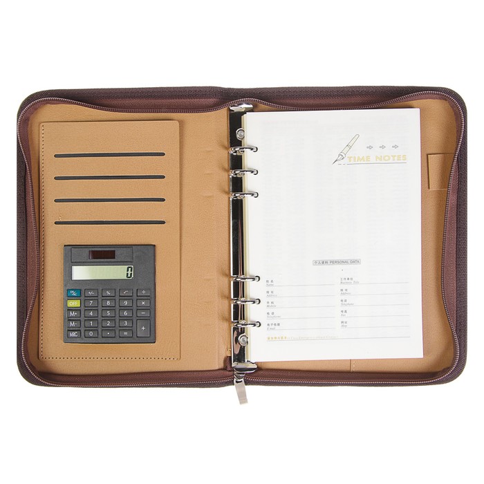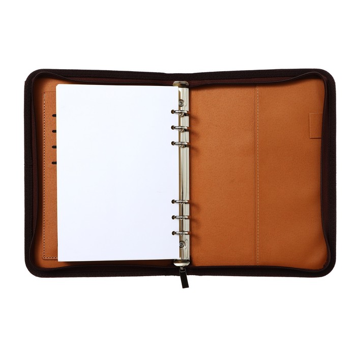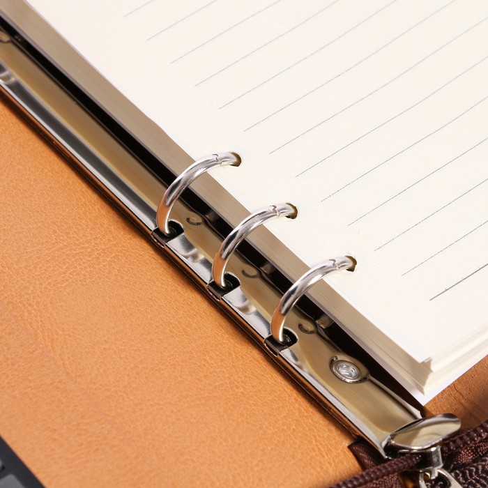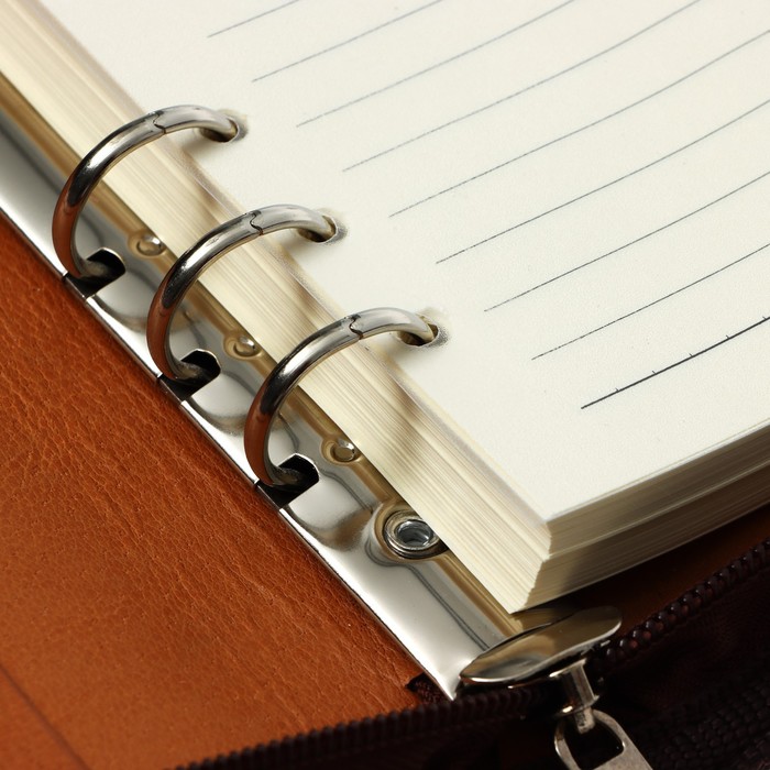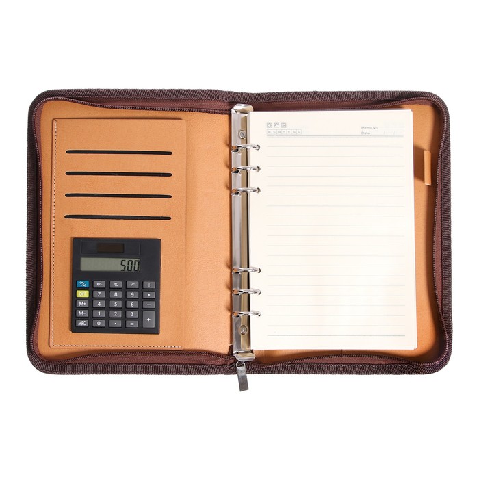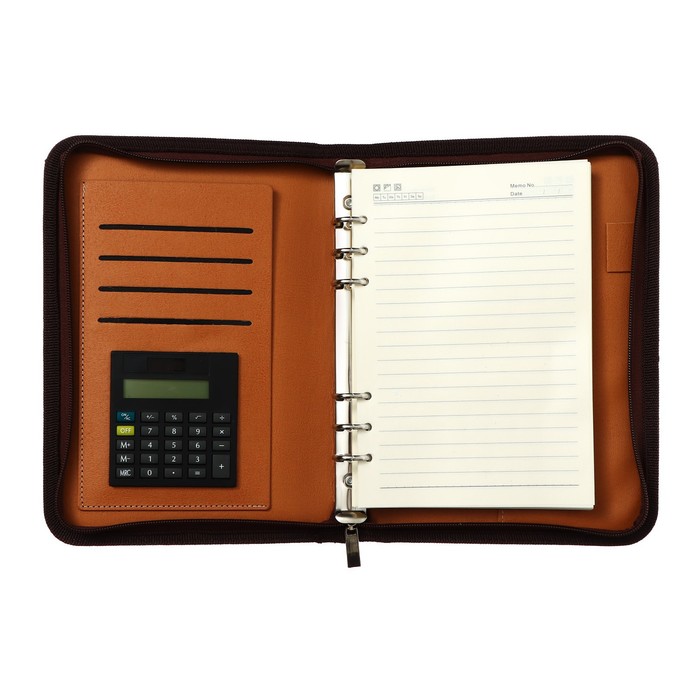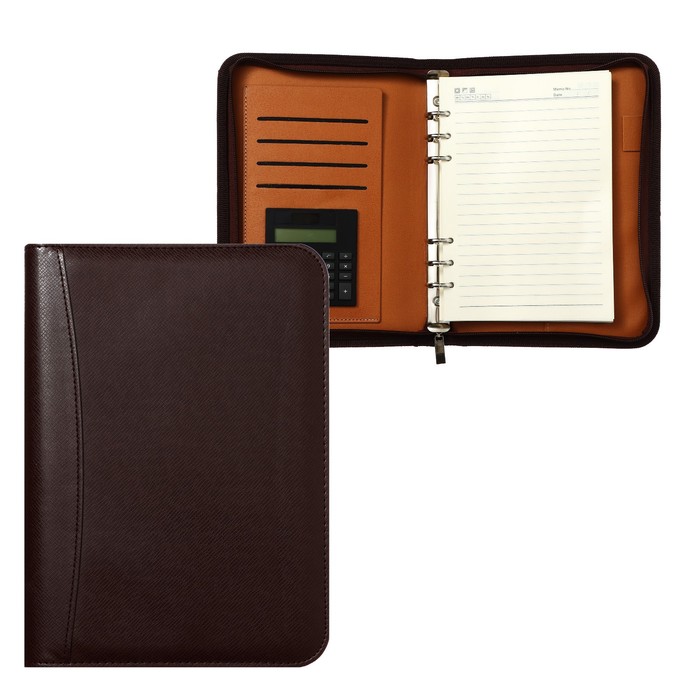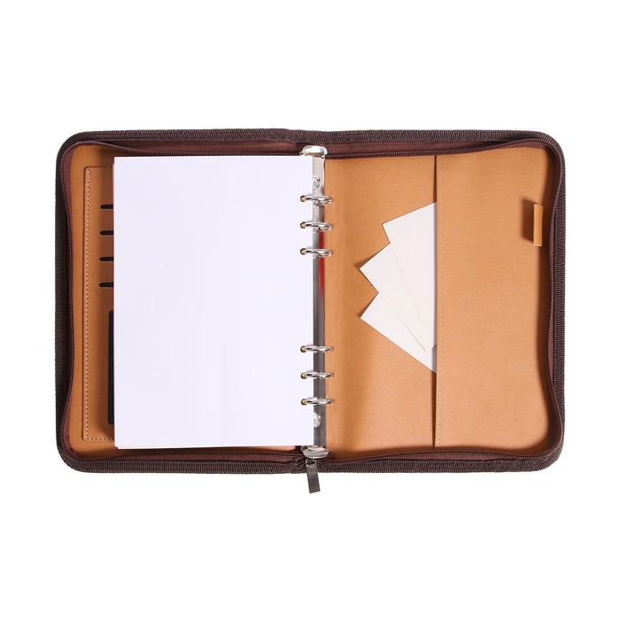 Органайзер на кольцах А5, 100 листов в линейку, с калькулятором, на молнии, коричневый — Характеристики