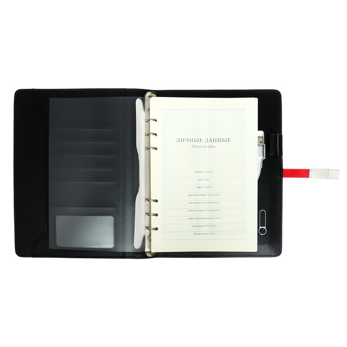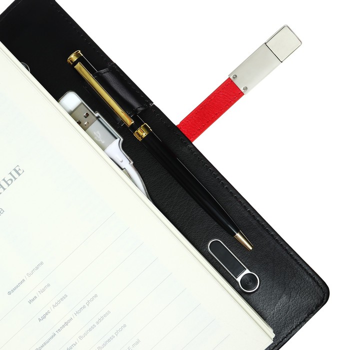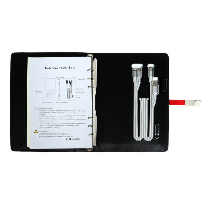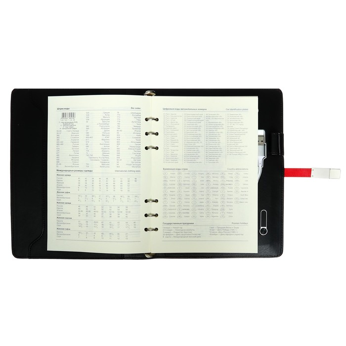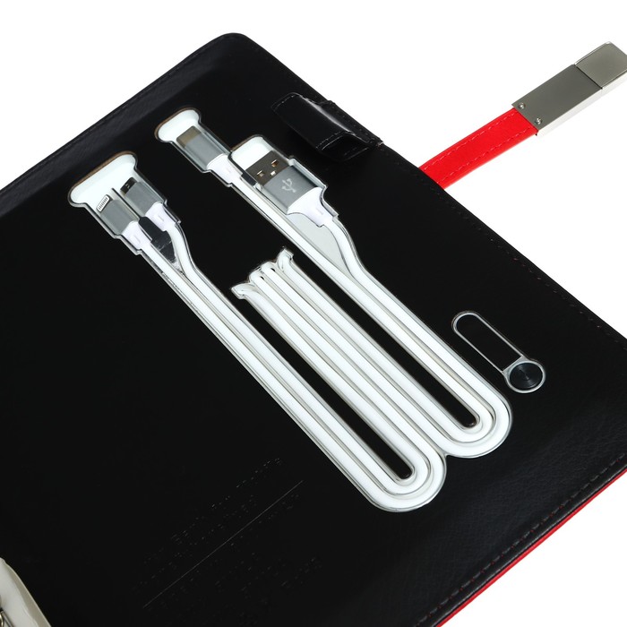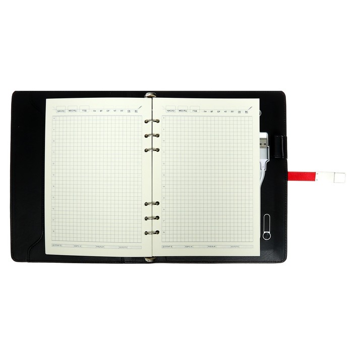 Органайзер на кольцах А5, 140 листов, в клетку, с ручкой, флешкой, зарядкой, подарочная коробка, обложка ПВХ, МИКС — Характеристики