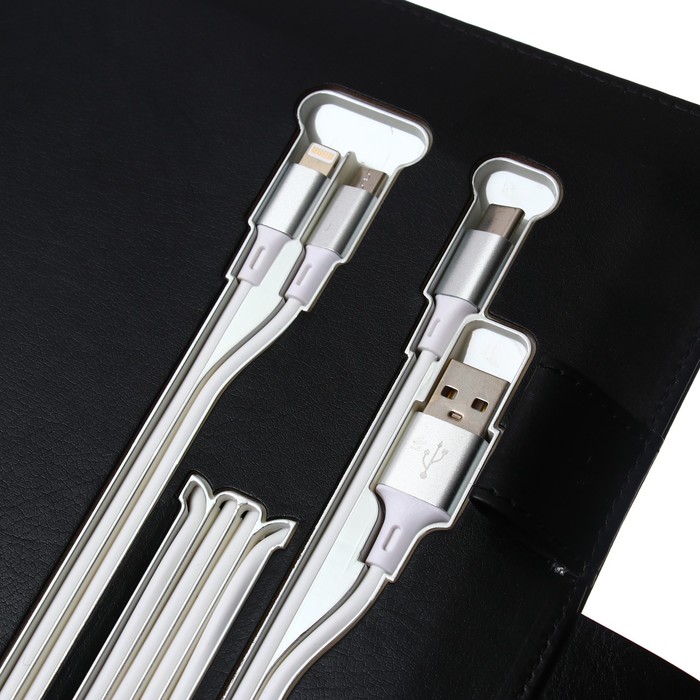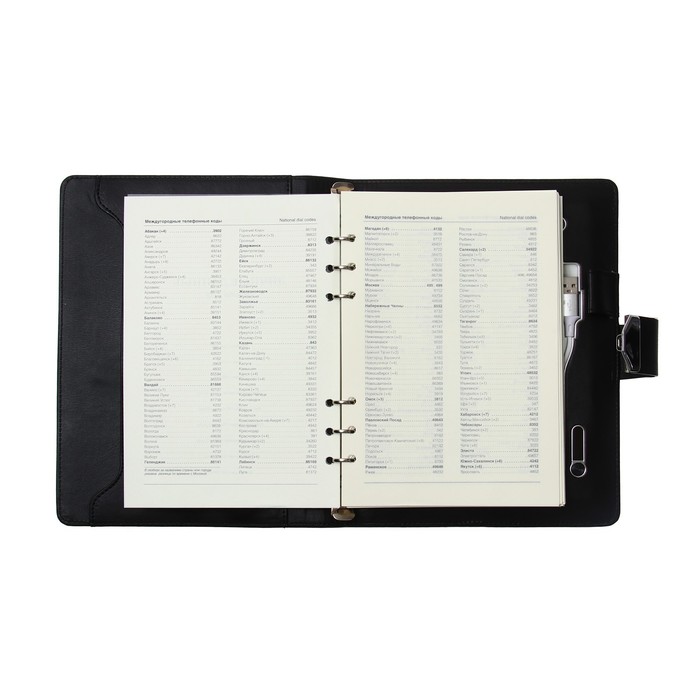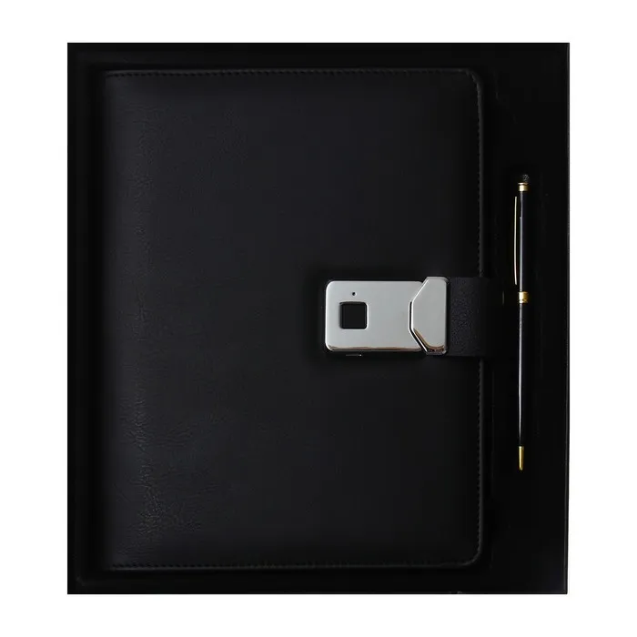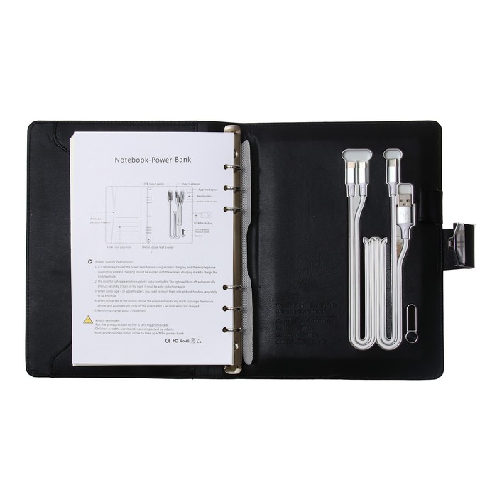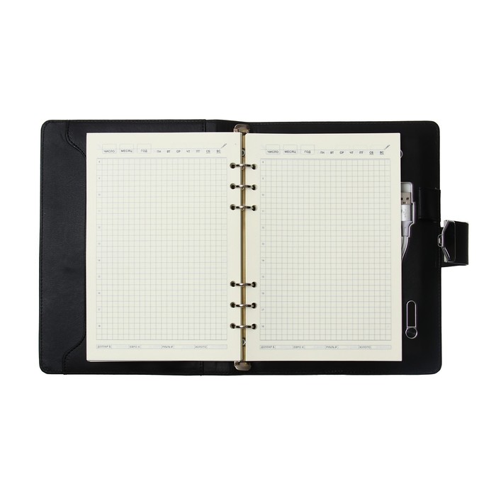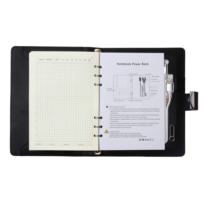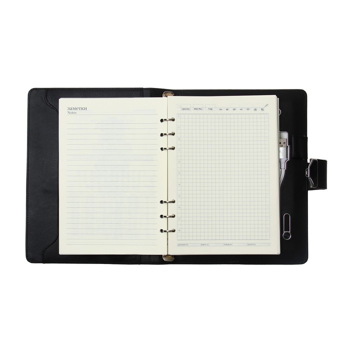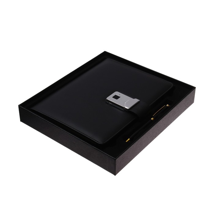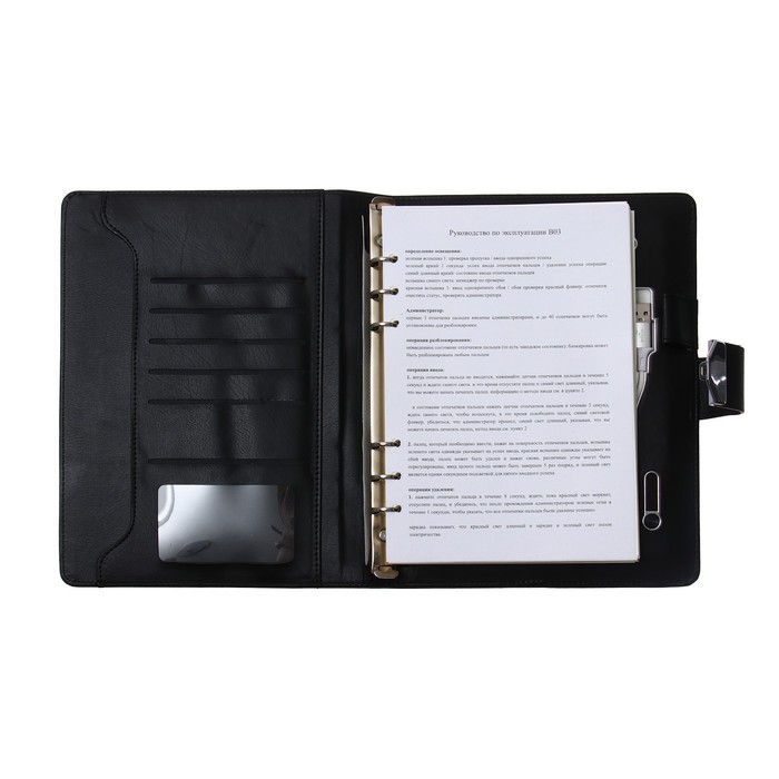 Органайзер на кольцах А5, 140 листов, в клетку, с ручкой, сканером пальца, зарядкой в подарочной коробке, обложка ПВХ, чёрный — Характеристики