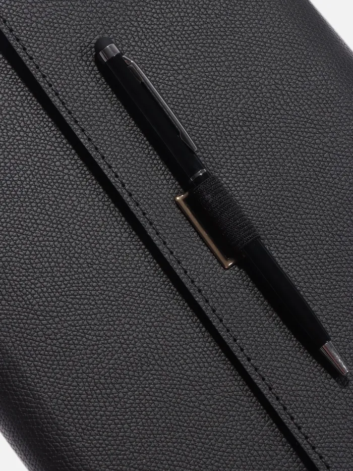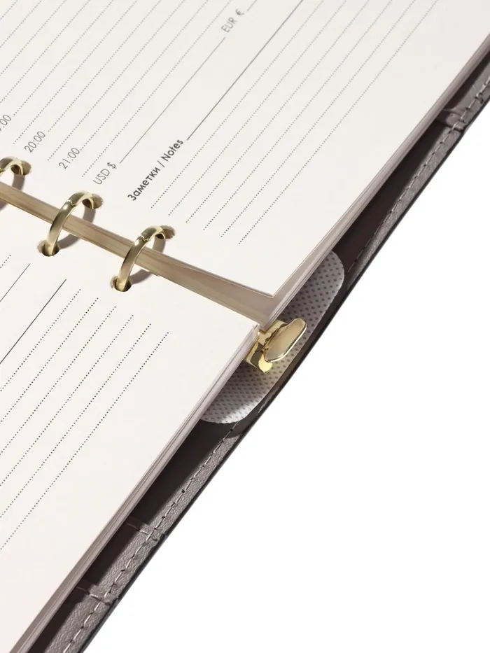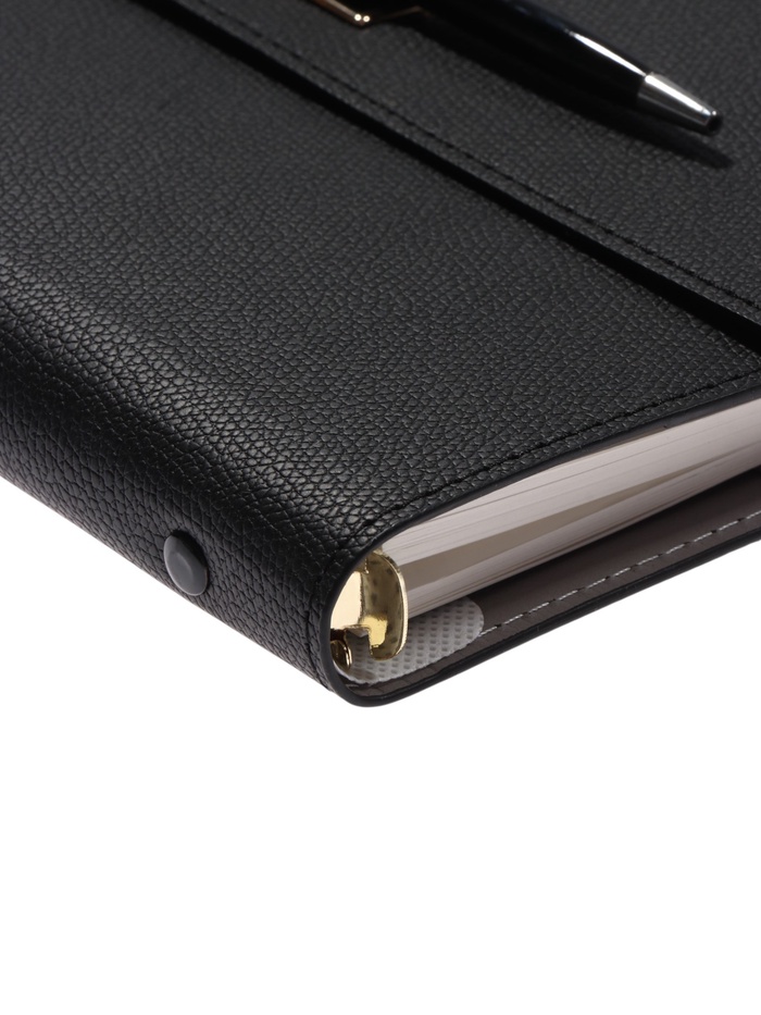 - Хлястик для фиксации: предотвращает случайное раскрытие и помогает сохранить порядок внутри блокнота.