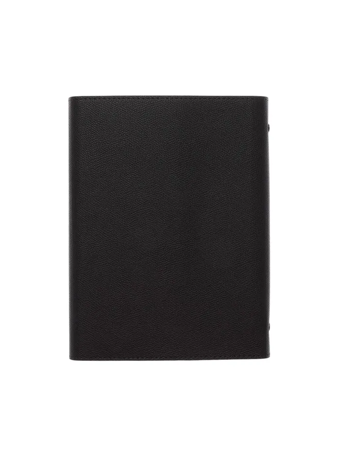 Кольцевой блокнот формата A5 в черной обложке из искусственной кожи сочетает удобство и функциональность для ежедневного использования.