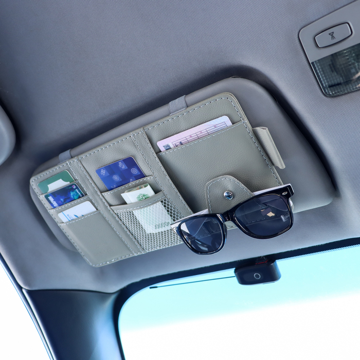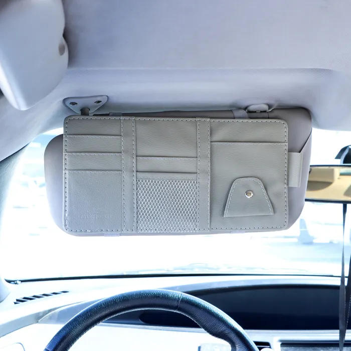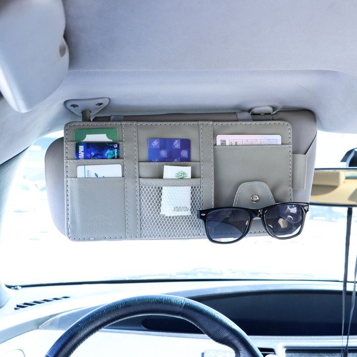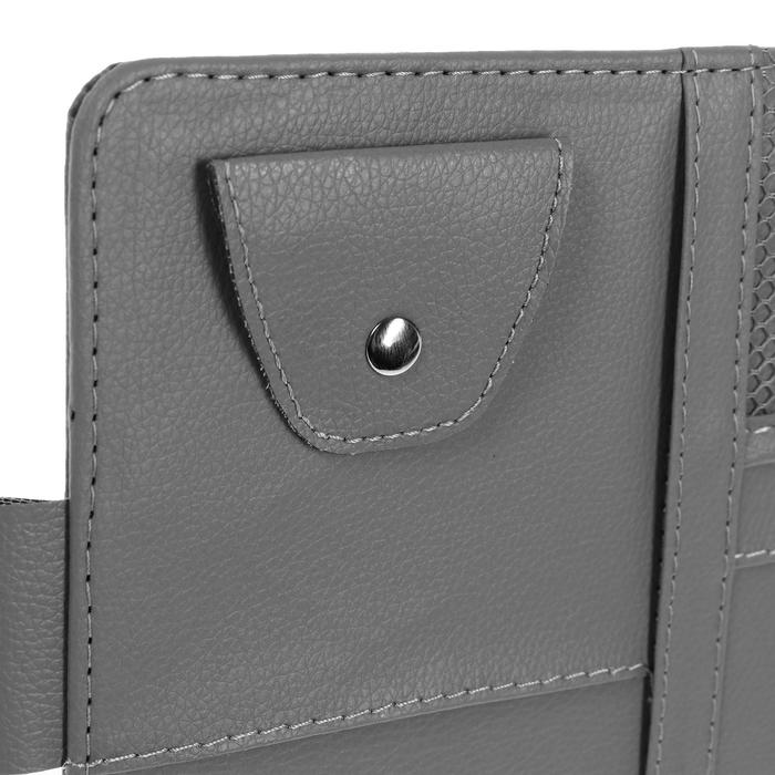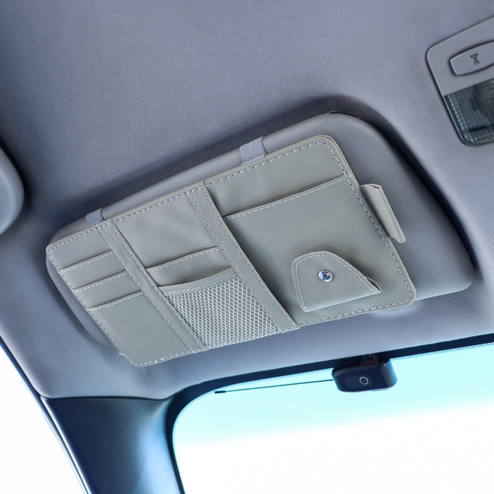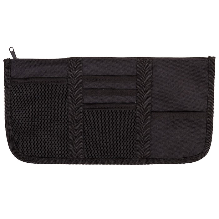 Органайзер на козырёк автомобиля поможет поддержать порядок в машине и при этом всегда иметь все необходимое под рукой! Панель органайзера оснащена кармашками для банковских, визитных карточек и других ценных предметов небольшого размера, так же имеется держатель для ручки и очков. Прикрепляется органайзер на солнцезащитный козырек двумя резинками.