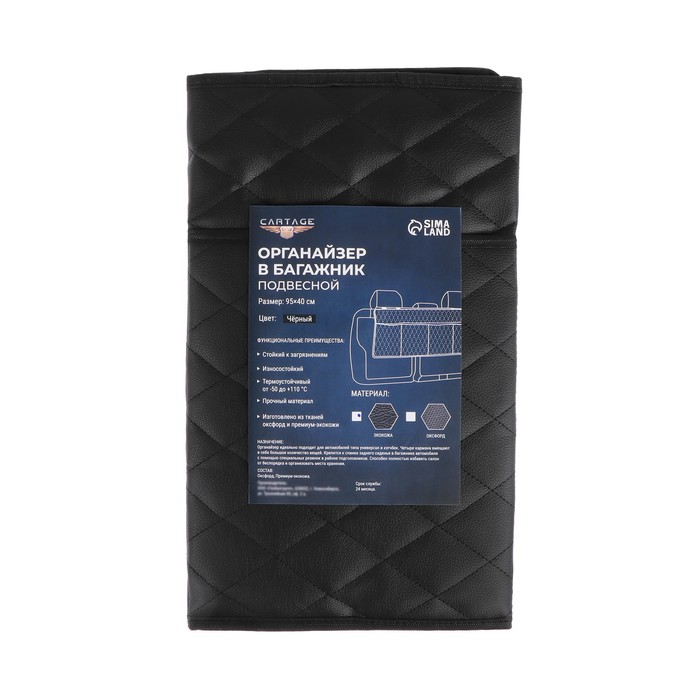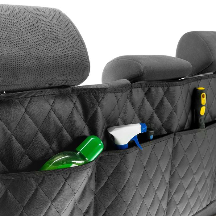 Органайзер имеет четыре вместительных кармана, идеально подходит для автомобилей типа универсал и хэтчбэк, крепиться за подголовники заднего сидения.