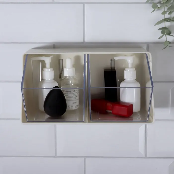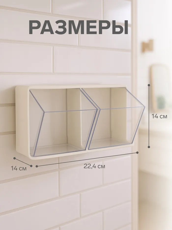 Органайзер настенный, 2 секции, 22.5×14×14 см, молочный, прозрачный — Характеристики
