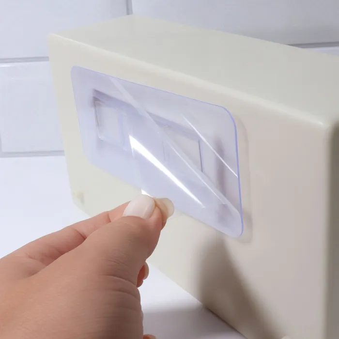 - Удобное крепление: органайзер легко монтируется на стену с помощью клеевых пластин, которые не оставляют следов и не повреждают поверхности.