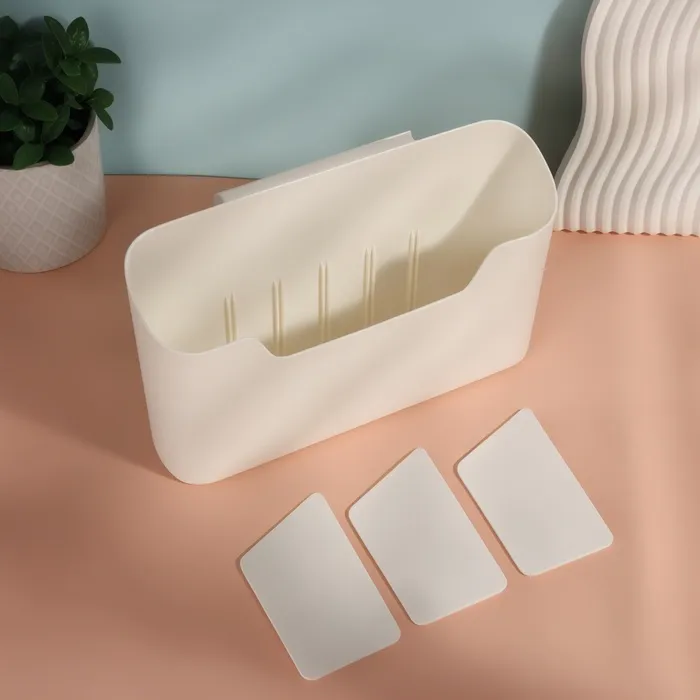 Благодаря крепкой клеевой основе, органайзер легко устанавливается на любую гладкую поверхность, будь то в ванной комнате, спальне или на кухне. Изготовленный из высококачественного пластика, он обладает прочностью и долговечностью, что делает его отличным выбором для долгосрочного использования.
