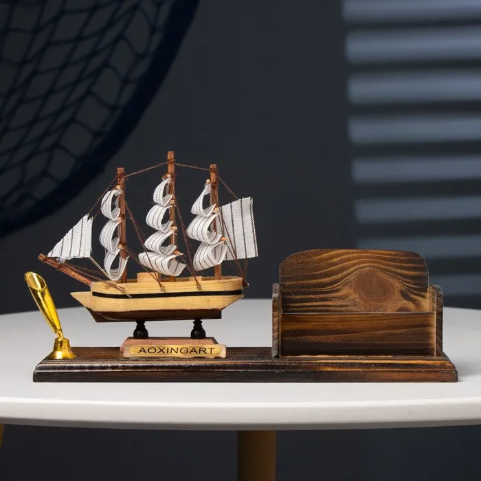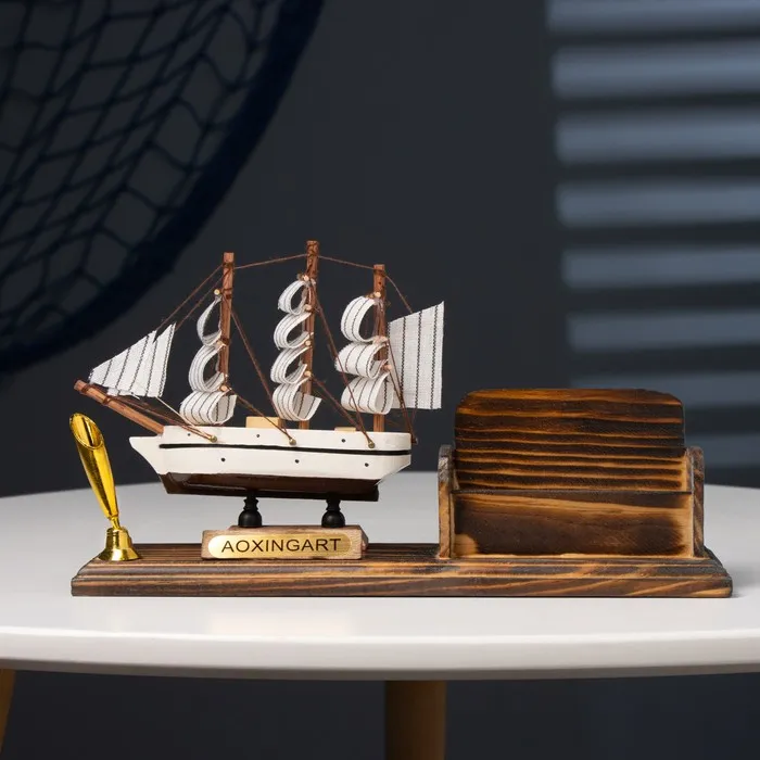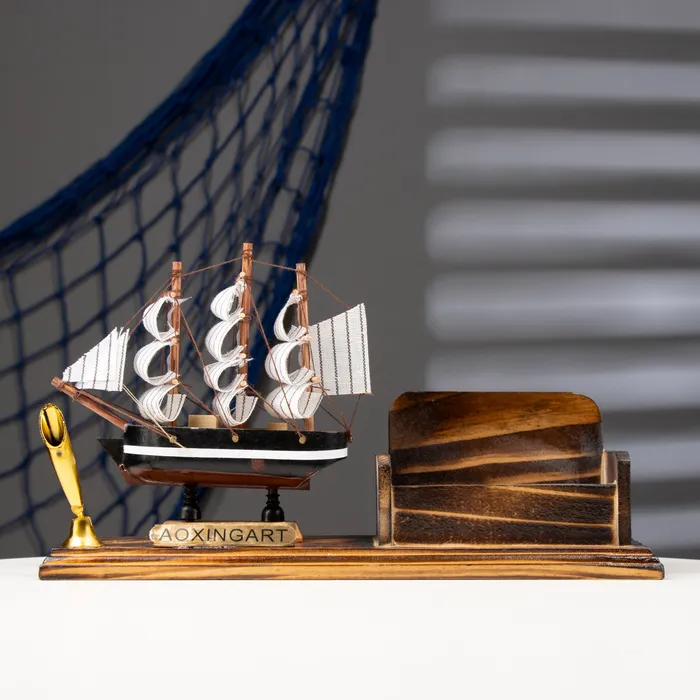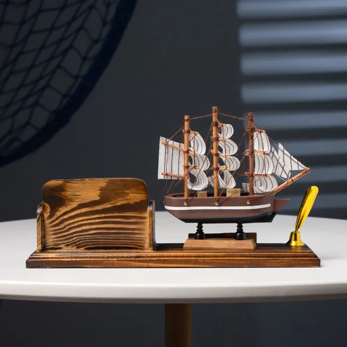 Органайзер настольный: визитница, подставка под ручку, сувенирная модель корабля, 15×25 см — Характеристики