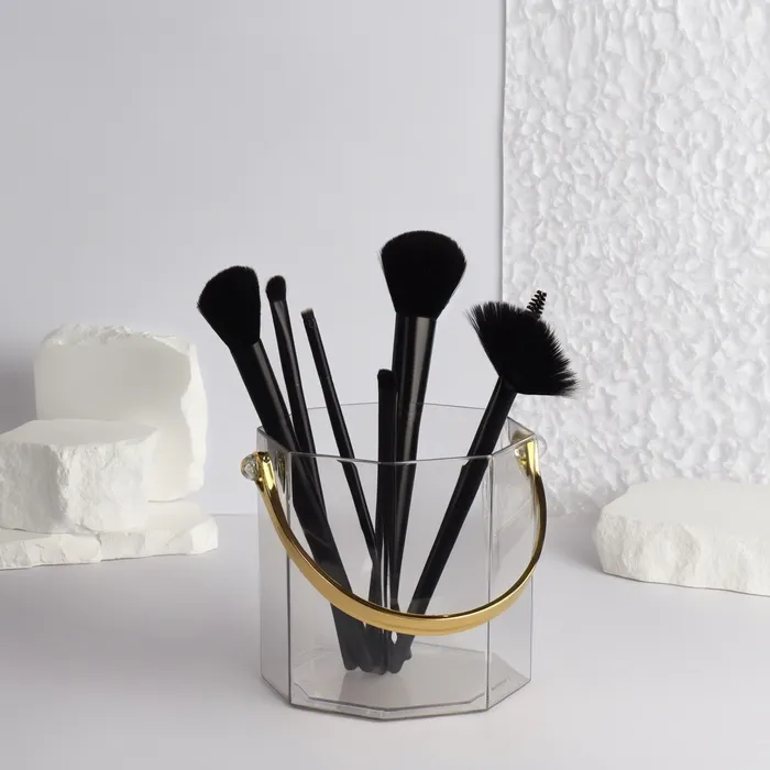 Представляем элегантный и функциональный аксессуар для хранения вашей косметики и украшений — органайзер с изысканным дизайном «CLEAN GOLD». Восьмиугольная форма, прозрачные стенки и золотистые акценты придают этому органайзеру особый стиль и шик, который идеально впишется в любой интерьер.