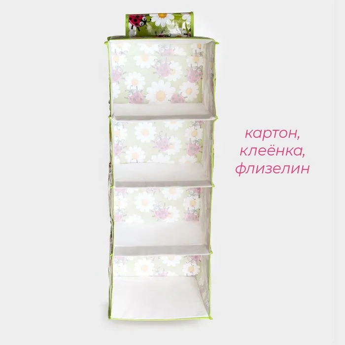 Органайзер подвесной Доляна «Божьи коровки», 4 отделения, 30×30×80 см, зелёный
