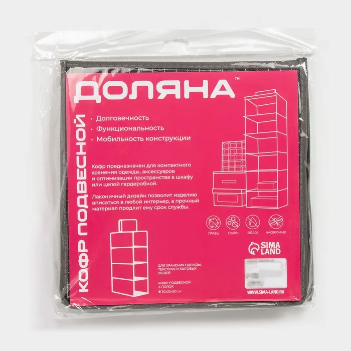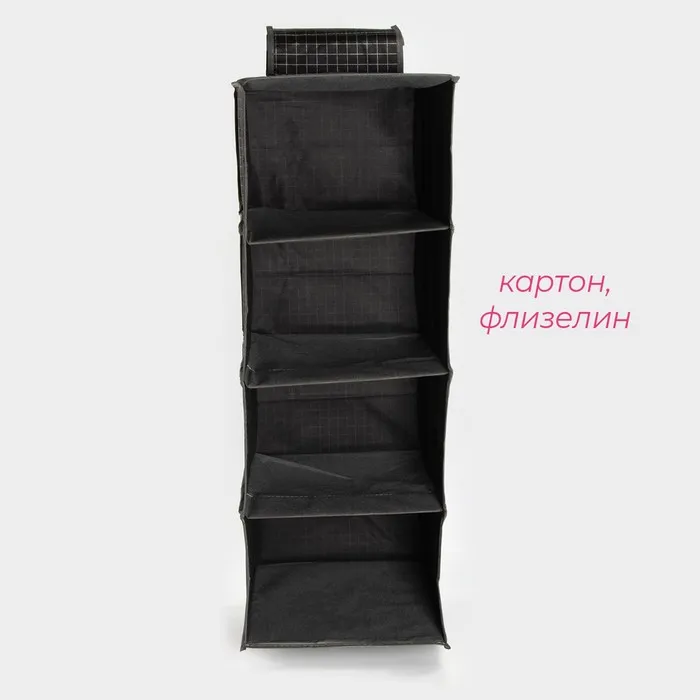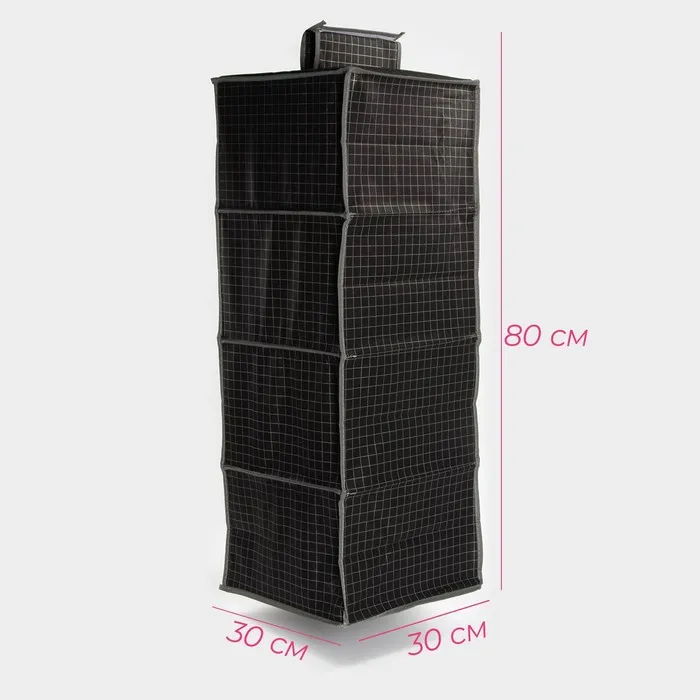 Органайзер подвесной Доляна «Кло», 4 отделения, 30×30×80 см, чёрный — Характеристики