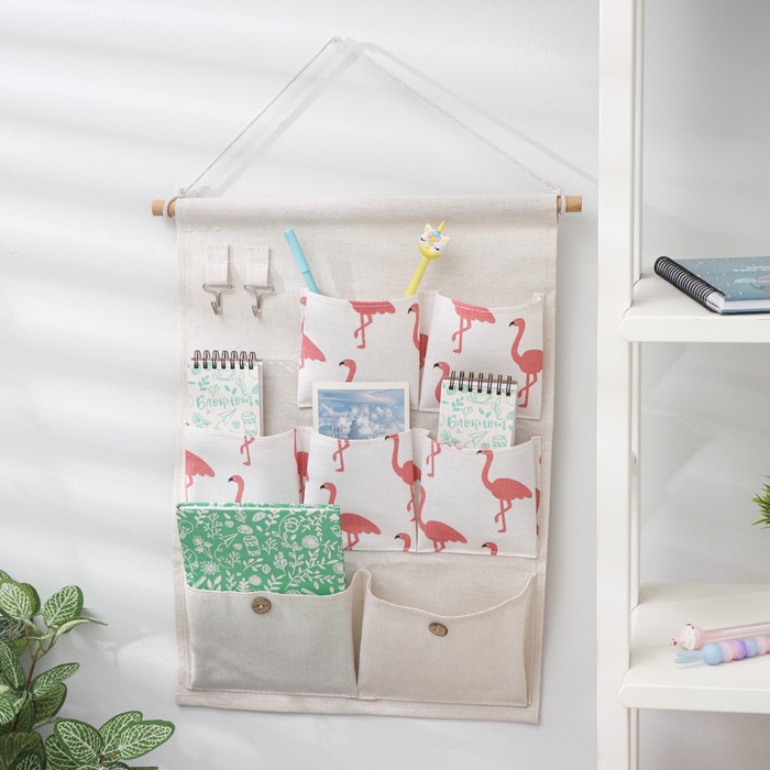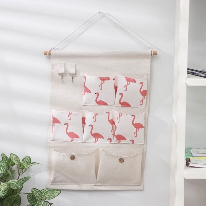 Органайзер подвесной с карманами Доляна «Фламинго», 7 отделения, 38×46,5 см, цвет серый — Характеристики