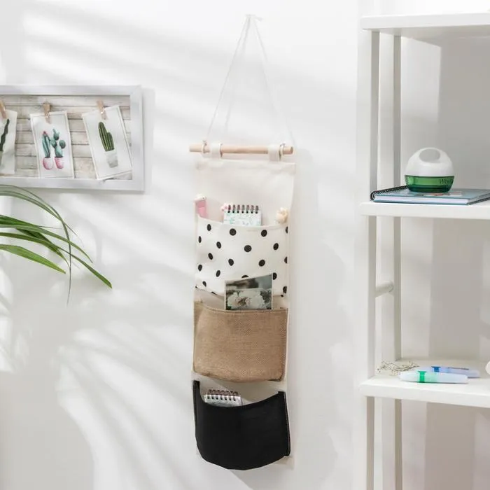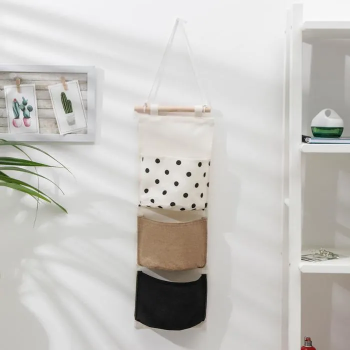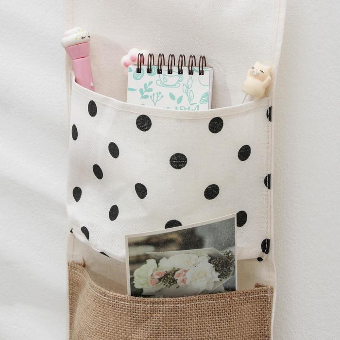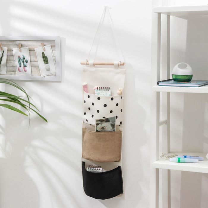 Подвесной органайзер Доляна с тремя вместительными карманами из натурального льна. Размер 59×20 см в классической цветовой гамме. Универсальное решение для хранения мелочей в любом помещении.