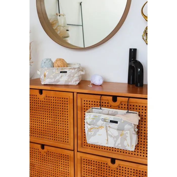 Организация домашнего пространства и наведение порядка порой становится не под силу без специальных приспособлений. Для удобного хранения мелочей, бижутерии, платков и шарфов воспользуйтесь органайзером «Мрамор» с 3 кармашками.