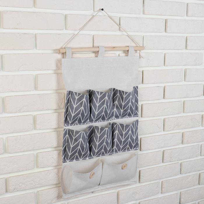 Органайзер подвесной с карманами Доляна «Зигзаг», 8 отделений, 35×53 см, серый