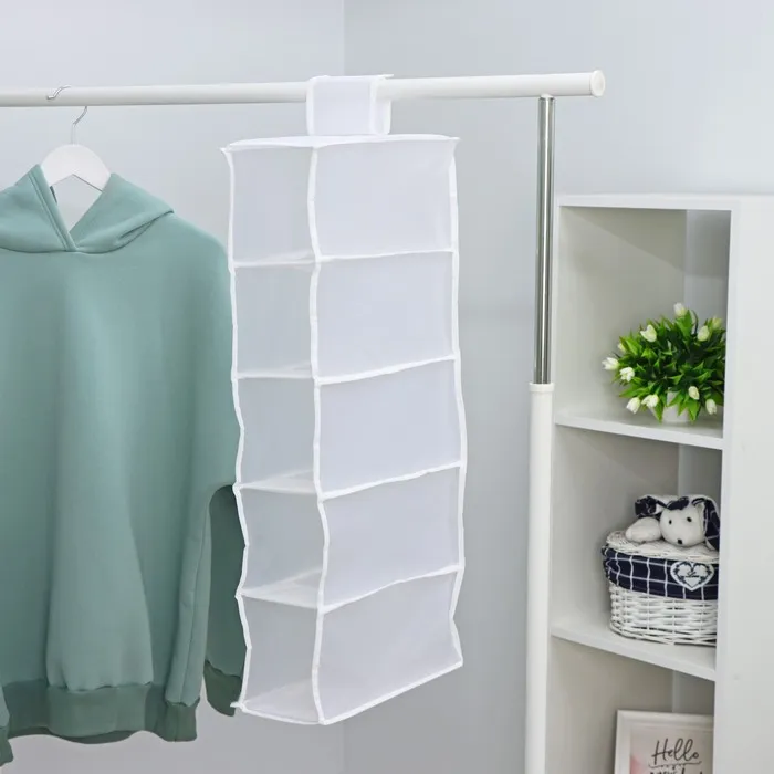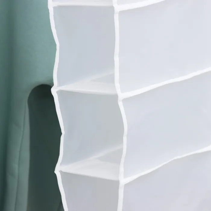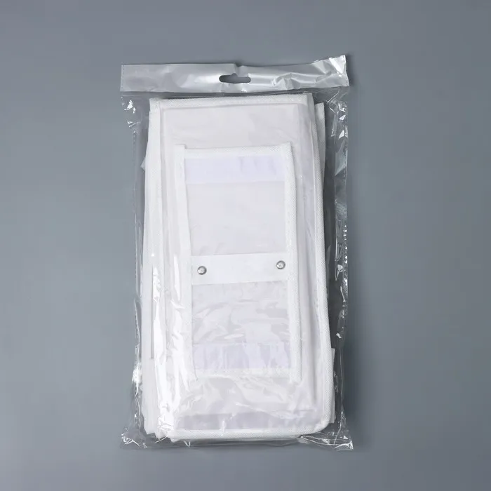 Подвесной кофр достаточно большой, что бы вместить всё необходимое, он сделан из лёгкого материала, и складывается одним движением руки. Специальные вставки держат форму кофра, не позволяя ему деформироваться. Флизелин имеет особую структуру, которая не пропускает пыль, но позволяет воздуху свободно циркулировать, благодаря чему, ваши вещи будут защищены от пыли и грязи, не в ущерб естественной вентиляции.