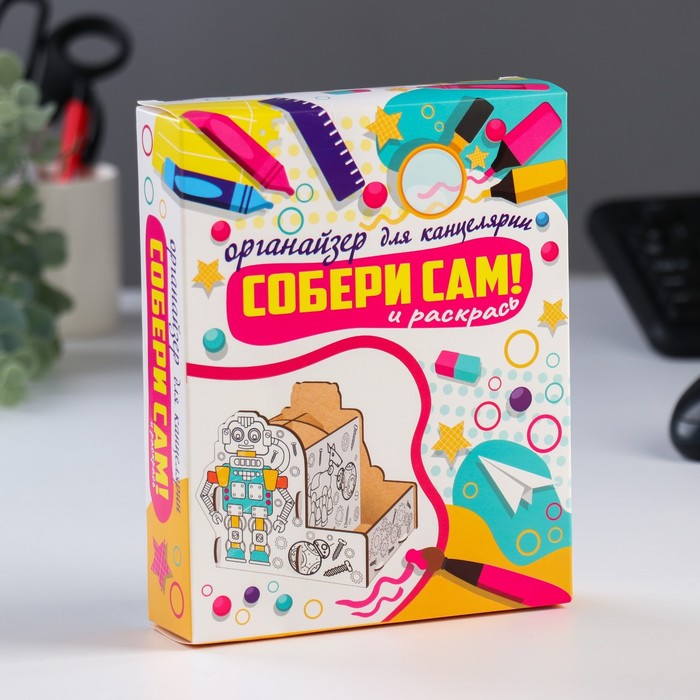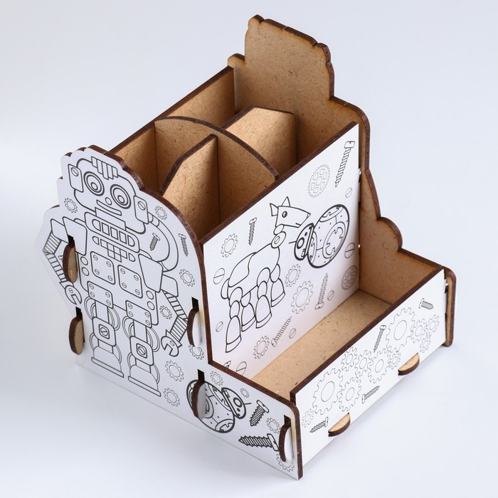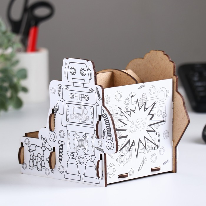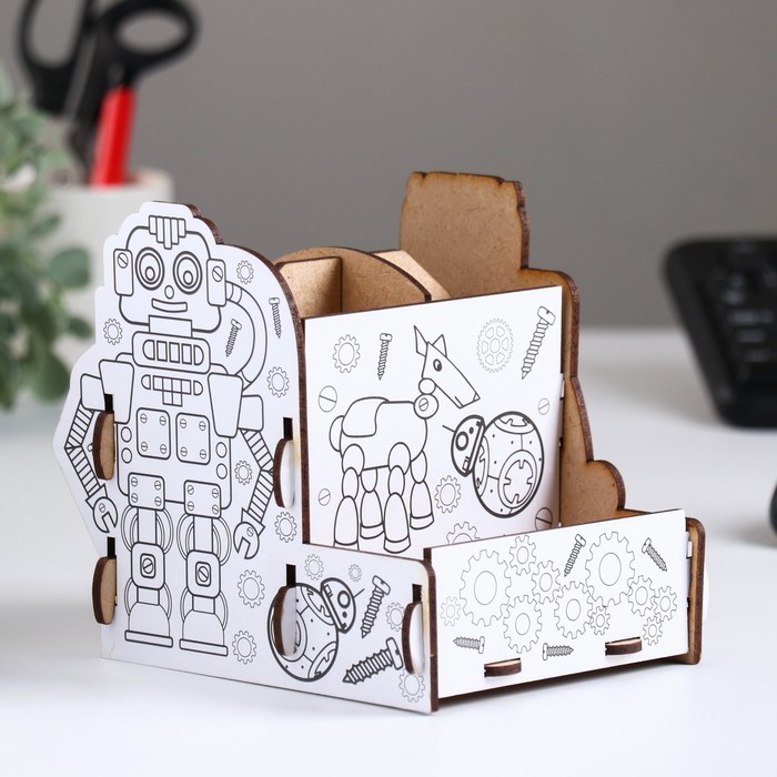 Органайзер-раскраска для канцтоваров «Роботы», 13×13×15 см