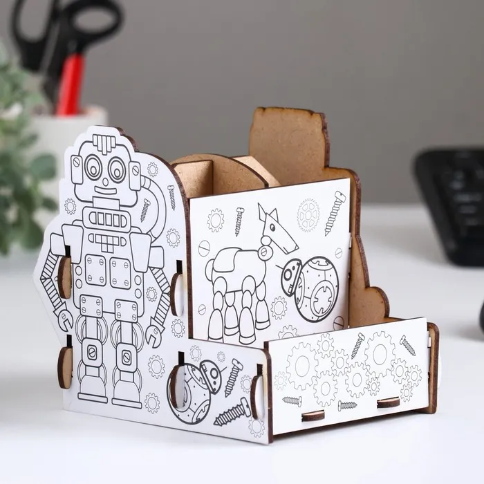 Органайзер-раскраска для канцтоваров «Роботы», 13×13×15 см — Характеристики
