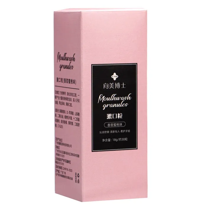 Состав: бикарбонат натрия, яблочная кислота, сорбит, кремнезем, лактобактерии, додекаэдр, сульфат натрия, ароматизатор персика, ментол, триоксиан, сахар, CI16255