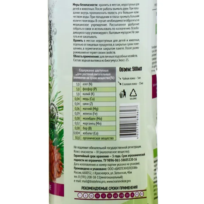 Гелеобразное органическое удобрение, изготовленное на основе экстракта биогумуса, с быстрым эффектом применения и длительным действием. В составе удобрения уникально сочетаются природные гуминовые и фульвоокислоты, почвенные бактерии, фитогормоны и другие биологически активные вещества, макро- и микроэлементы. Все действующие вещества удобрения находятся в составе легкодоступных для растений органических комплексов.
