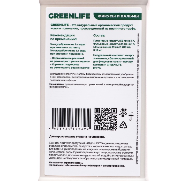 Органическое удобрение "Green Life" представляет собой надежный помощник в уходе за фикусами и пальмами, обеспечивая им все необходимые питательные вещества для здорового роста и развития. Продукт легко дозируется и применяется, что делает его удобным в использовании даже для начинающих садоводов. Благодаря своей эффективности и безопасности, органическое удобрение "Green Life" станет незаменимым помощником для всех, кто ценит здоровье своих растений и заботится о сохранении природы.