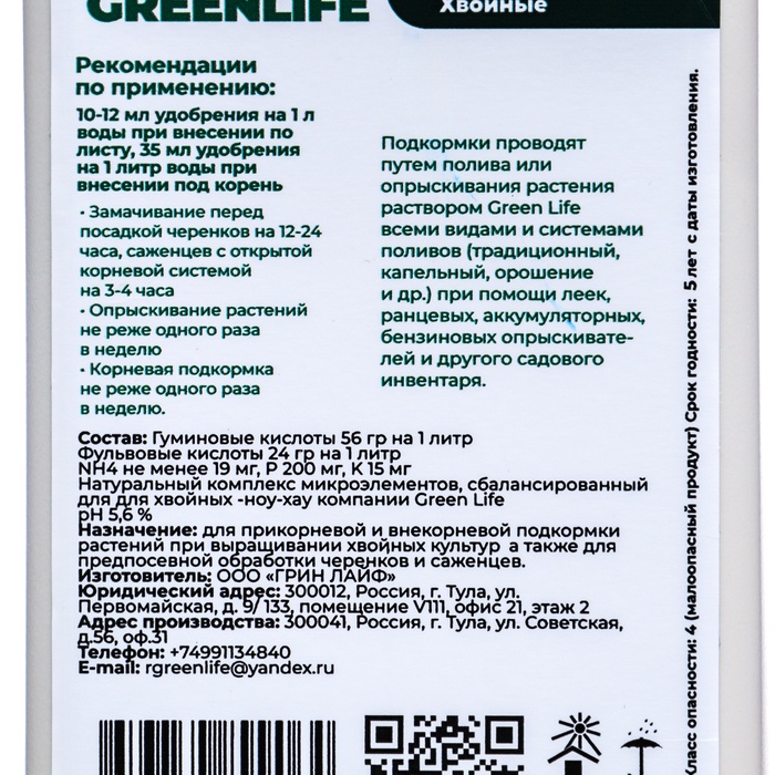 - Улучшение почвы. Применение удобрения "Green Life" способствует улучшению структуры почвы, повышению ее водопроницаемости и удержанию влаги, что особенно важно для хвойных растений, чувствительных к пересыханию почвы.