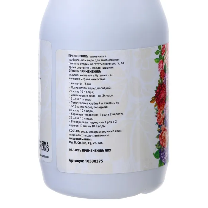 Способствует улучшению усвоения питательных веществ корнями растений.Увеличивает урожайность и улучшает качество плодов.Используется для замачивания семян перед посадкой, что способствует их прорастанию и укреплению.Применяется для опрыскивания растений, что помогает улучшить фотосинтез и защитные функции.Улучшает структуру почвы, повышает её плодородие и водоудерживающую способность.Для безопасности используйте средства индивидуальной защиты при работе со средством. Храните в прохладном, защищенном от света месте, вдали от детей.