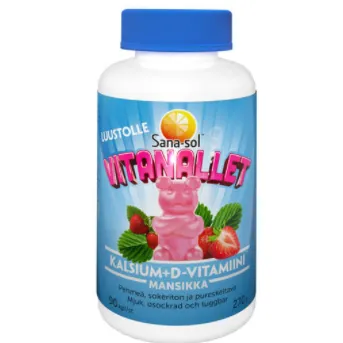 • Sana-Sol Vitanallet Strawberry - это мягкий жевательный продукт с кальцием и витамином D, специально предназначенный для детей и молодежи.