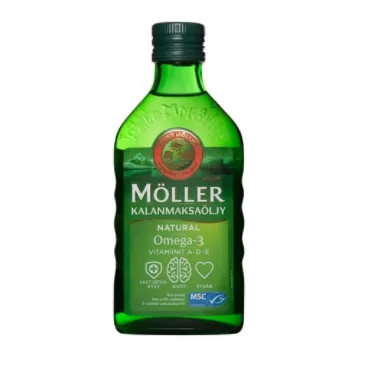Жир печени трески Möller богат жирными кислотами Омега-3, особенно жирными кислотами ЭПК и ДГК, витаминами А и D, которые важны для устойчивости, и витамином Е.