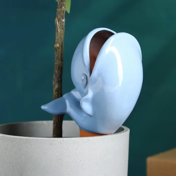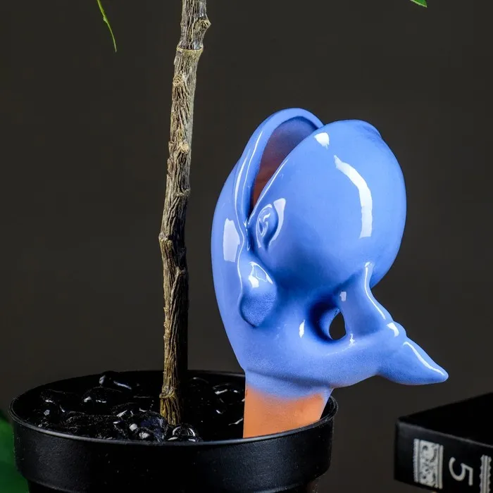 Фигурка-ороситель для капельного полива станет отличным помощником в уходе за любимыми растениям. Внутрь фигурки нужно залить воду и воткнуть ее в горшок с цветком. Вода постепенно будет просачиваться через стенки оросителя и тем самым защитит почву от пересыхания.