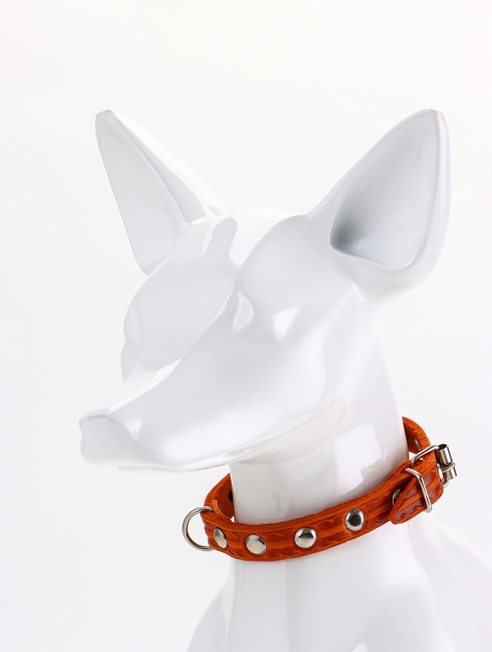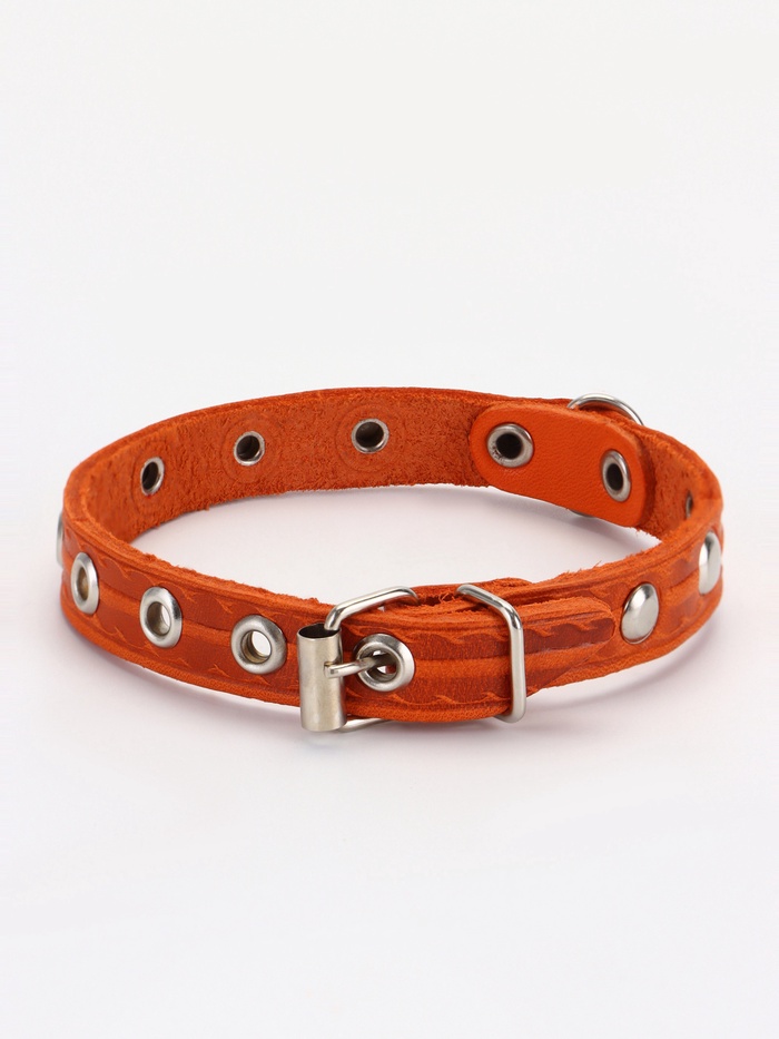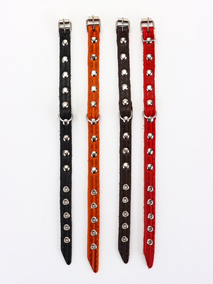 Ошейник, 29×1.2 см, ОШ 18-25 см, однослойный, украшенный, кожа, цвет МИКС — Характеристики