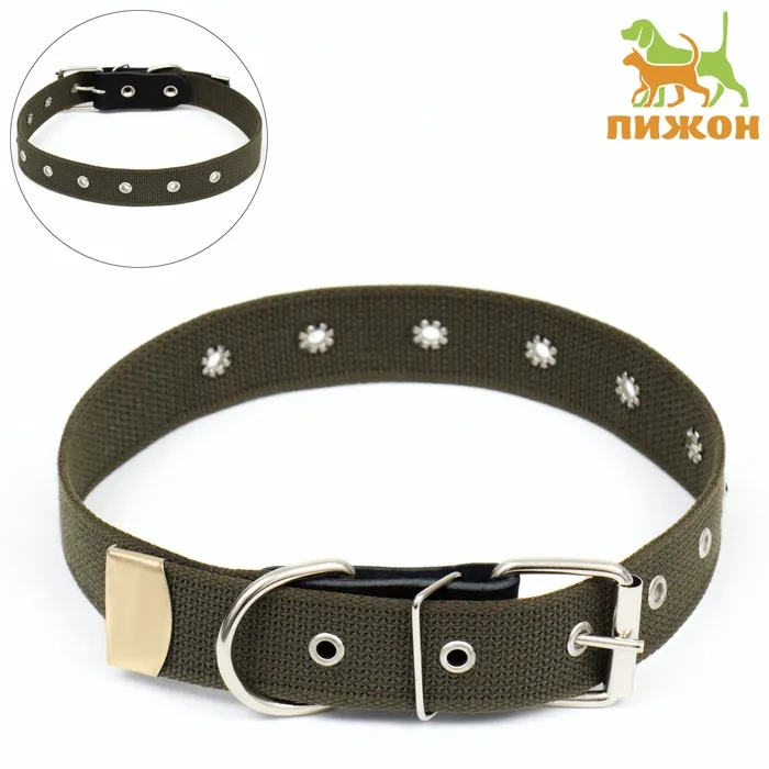 Ошейник брезентовый безразмерный однослойный, 72 х 3,5 см, ОШ 45-60 см, хаки — Характеристики
