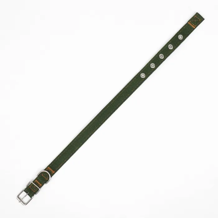 Ошейник двухслойный 52 х 2 см - это аксессуар для собак, изготовленный из прочного и устойчивого к износу материала - Брезента, в состав которого входит полиэстер.