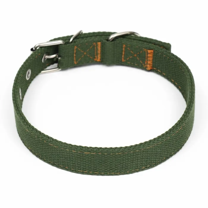 Ошейник двухслойный 59,5 х 2,5 см - это аксессуар для собак, изготовленный из прочного и устойчивого к износу материала - Брезента, в состав которого входит полиэстер.