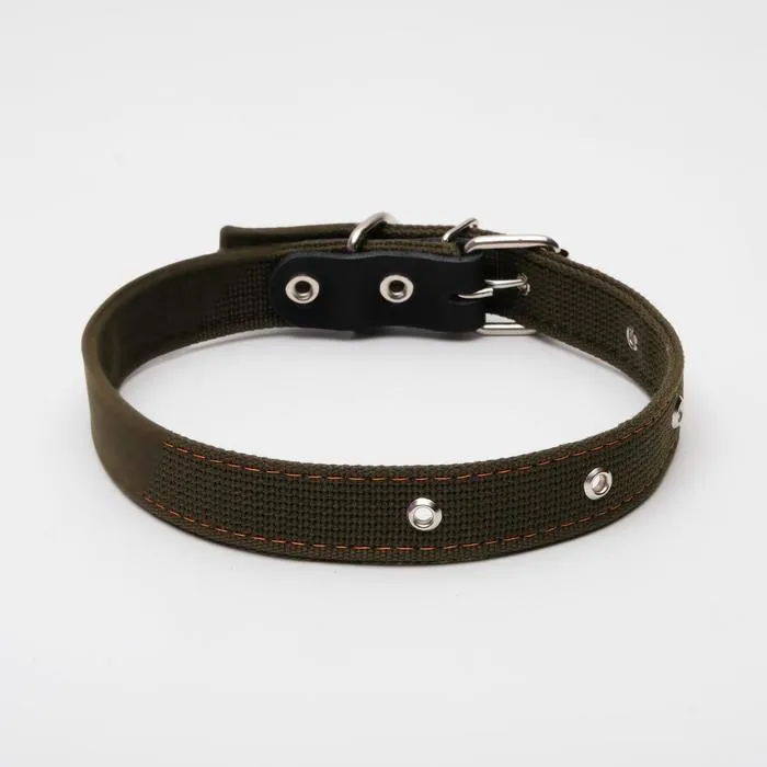 Ошейник брезентовый двухслойный, 62 х 3 см, ОШ 30-55 см, тёмно-зелёный