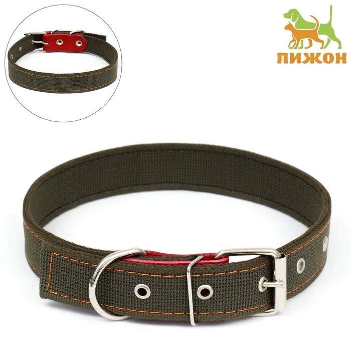 Ошейник брезентовый двухслойный, 72 х 3,5 см, ОШ 45-60 см, хаки — Характеристики