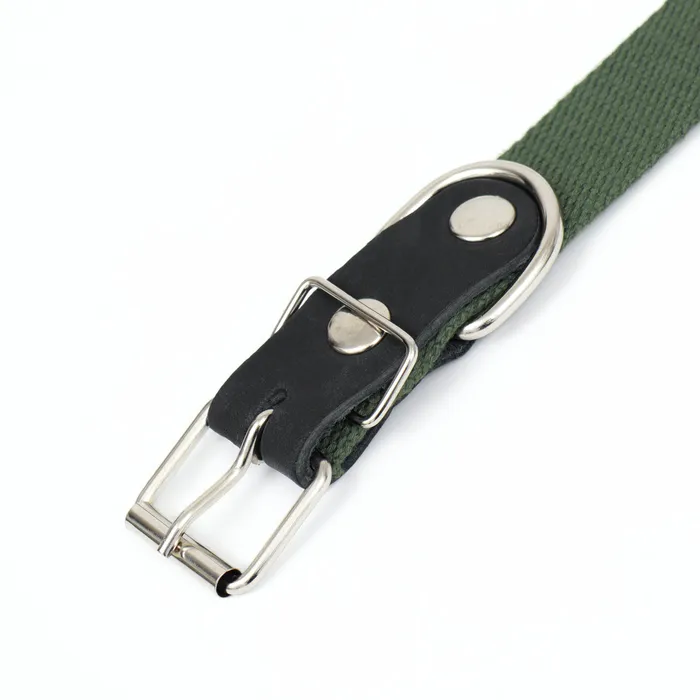 Ошейник брезентовый однослойный, 66 х 3 см, ОШ 33-60 см, тёмно-зелёный