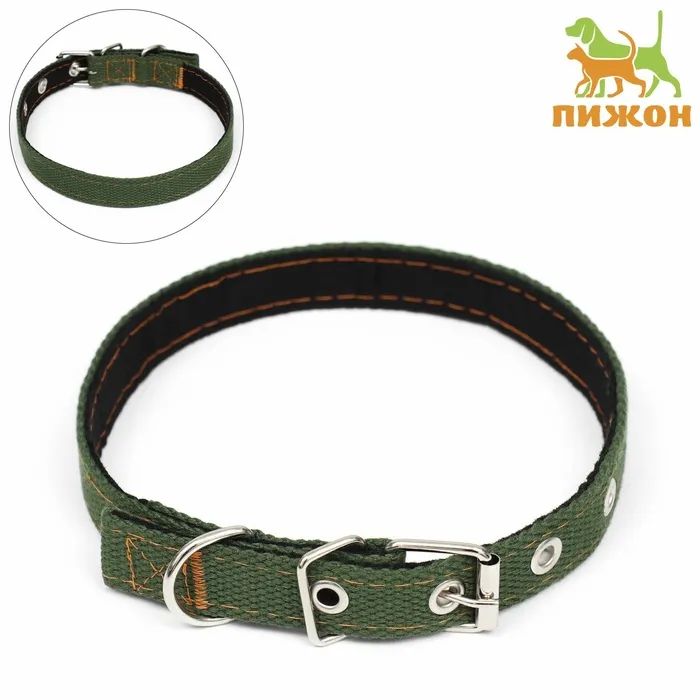Ошейник с подкладом 52 х 2 см - это аксессуар для собак, изготовленный из прочного и устойчивого к износу материала - Брезента, в состав которого входит полиэстер.