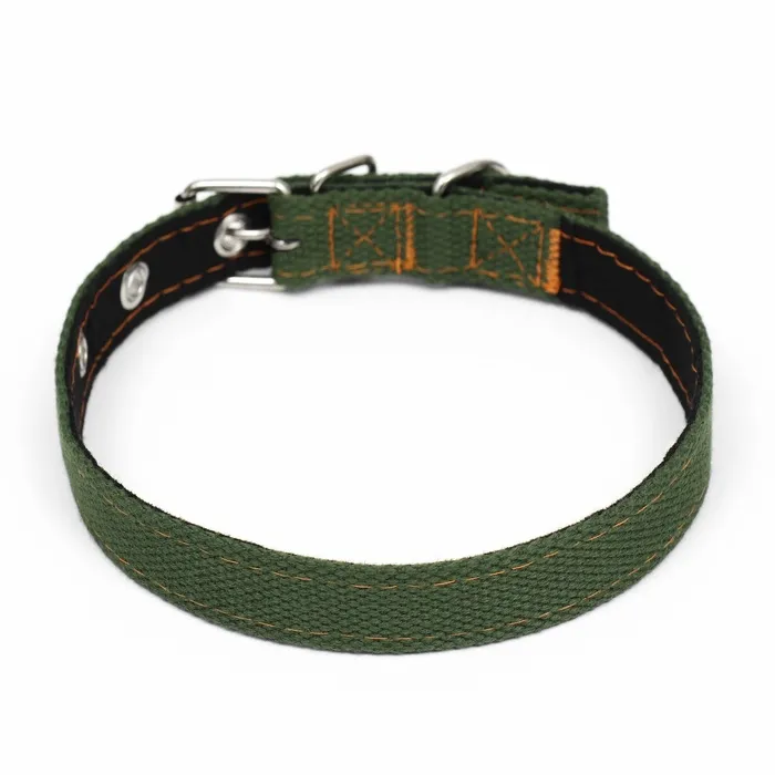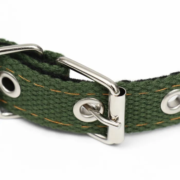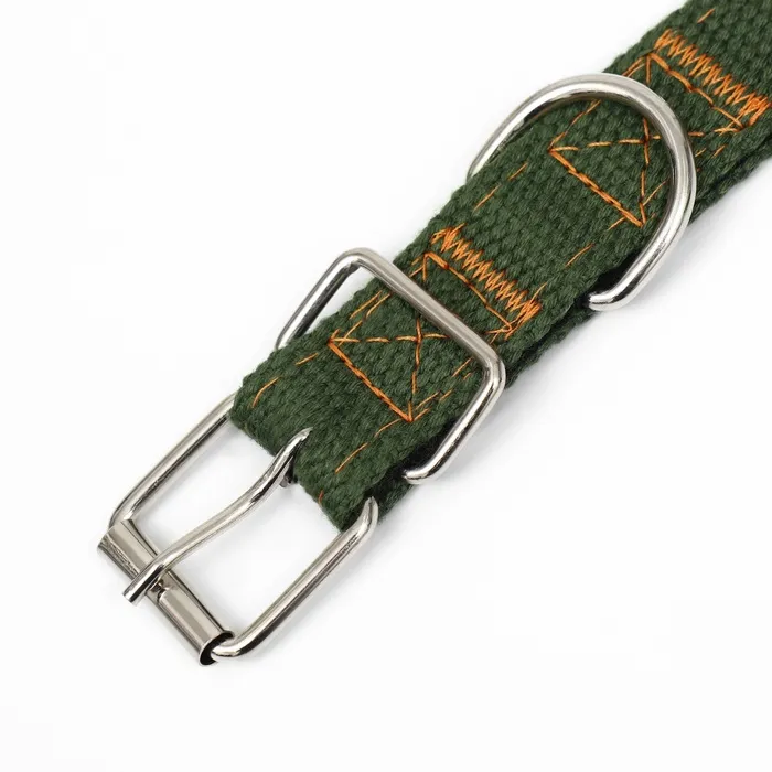 Брезентовый материал обеспечивает прочность и долговечность ошейника, позволяя ему выдерживать сильное натяжение и избегать износа при рывках или тяге.