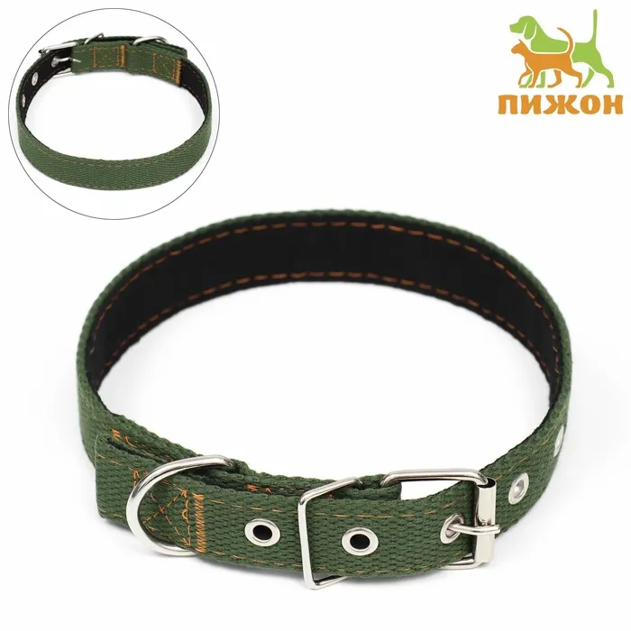 Ошейник с подкладом 58 х 2,5 см - это аксессуар для собак, изготовленный из прочного и устойчивого к износу материала - Брезента, в состав которого входит полиэстер.