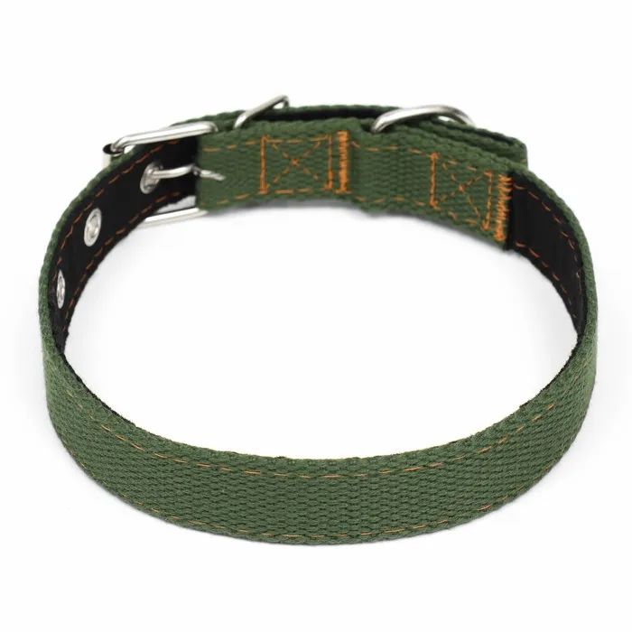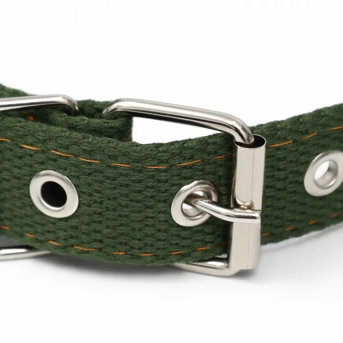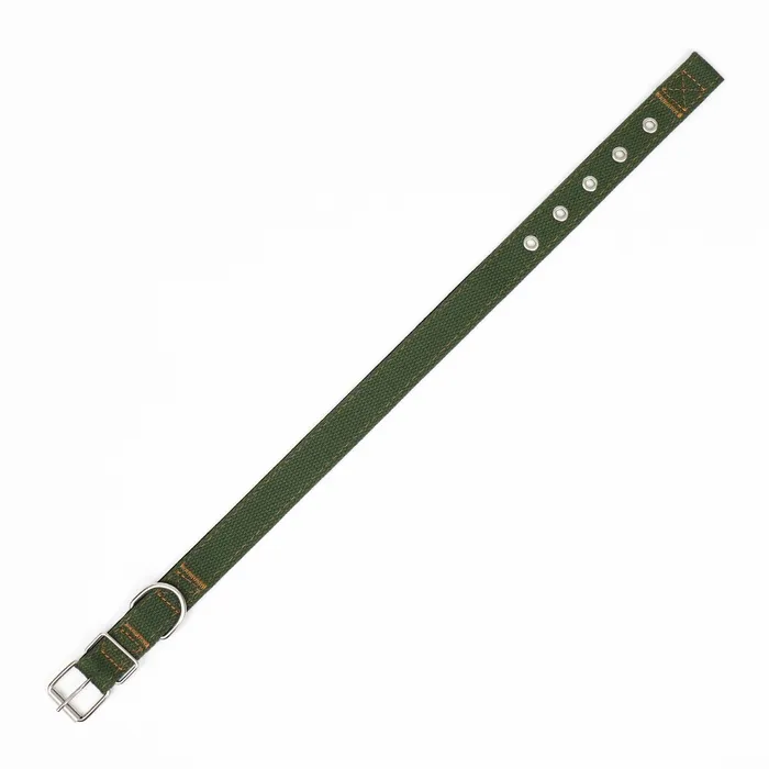 Брезентовый материал обеспечивает прочность и долговечность ошейника, позволяя ему выдерживать сильное натяжение и избегать износа при рывках или тяге.